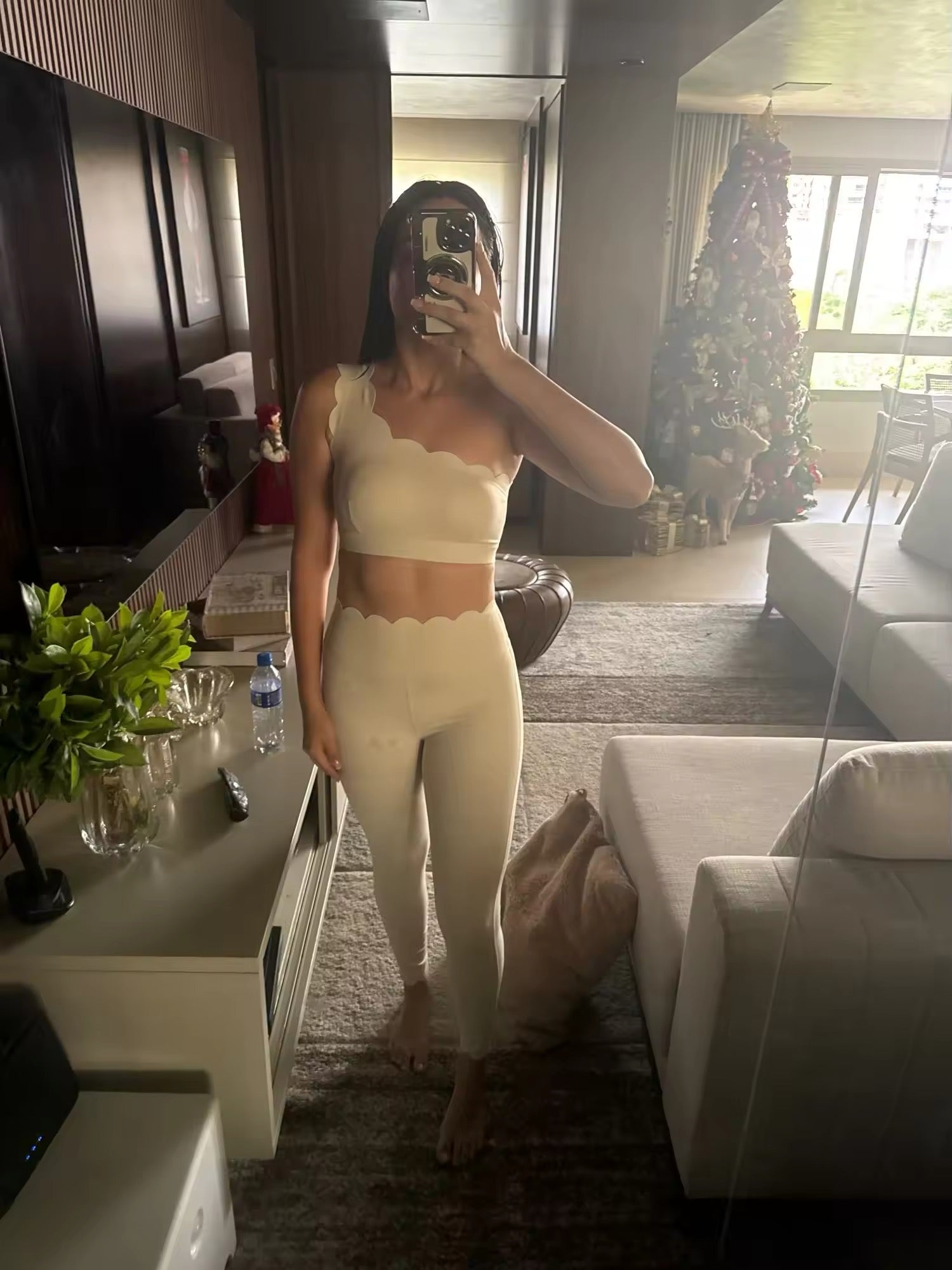Designed with a seductive one-shoulder silhouette and elegant scalloped detailing, this ensemble offers a flawless fit that hugs your curves while providing excellent support during workouts.